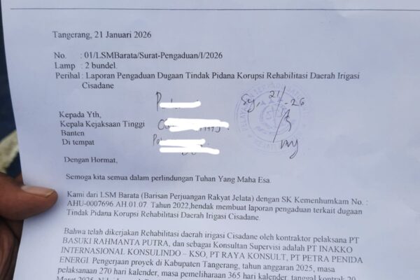 ” Kami melaporkan kepada Kejati Banten pada tanggal 21 Januari 2026, yang sampai sekarang sudah berjalan 4 bulan, dan surat pengaduan tersebut diterima oleh bidang Penkum, namun sampai saat ini belum ada tindak lanjut dari pihak Kejati,” ujarnya.